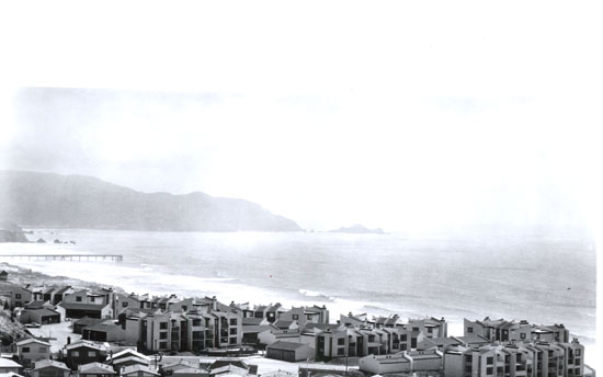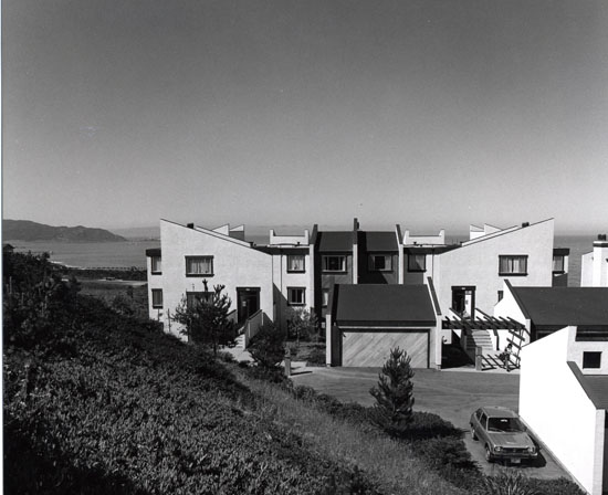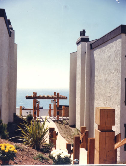 In 1975, Alpha Land Company asked Willis and Associates, Inc. (Willis) to design a condominium with 96 apartments. The sloping, 9-acre site for the project was located in Pacifica, California. The beachfront property had a spectacular 270-degree view of the Pacific Ocean. The design challenge was to maximize the views from each apartment, while keeping the units affordable to moderate-income buyers. Included in the program were common areas, which included a recreational center with a fireplace and kitchen facilities, a tennis court, a children’s play area, and visitor parking.