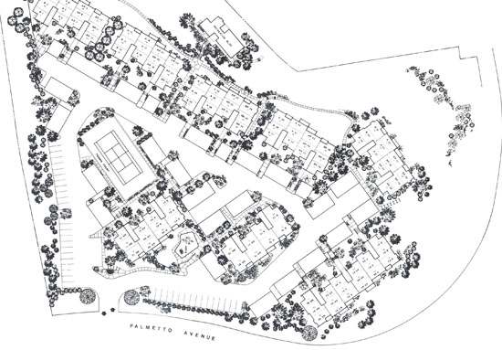 The site’s geological conditions required the architect to restrict potential damage not only from earthquakes but also mudslides and soil erosion, further limiting potential sites for the buildings. This offered Willis the first opportunity to use her proprietary computer program, CARLA (Computerized Approach for Residential Land Analysis). With this revolutionary program, Willis was able to quickly determine where buildings could safely be built. In addition, it indicated what configuration of buildings would maximize the views from each apartment and give the buildings the appearance of a custom design for the least possible construction cost.